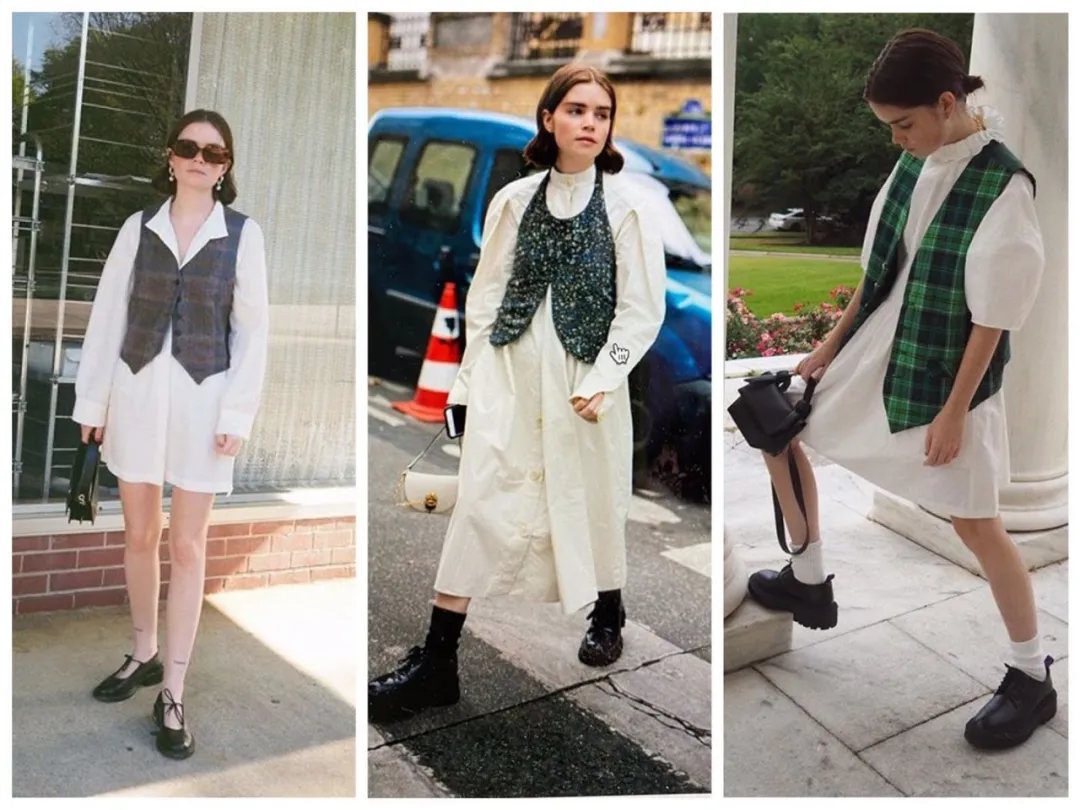 初秋单穿连衣裙未免缺乏层次,而搭配针织、西装、夹克又都玩腻了?不妨试试套马甲吧!