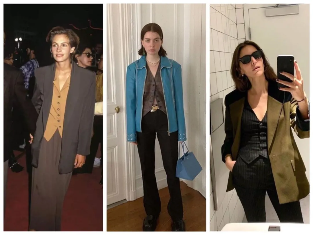 马甲配外套,首选西装。从罗伯茨到Reese都在这么穿,女人味和强势感结合,普通人也能驾驭。