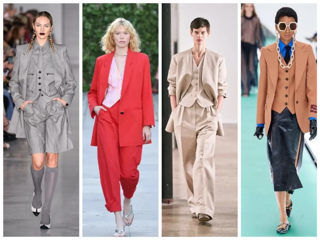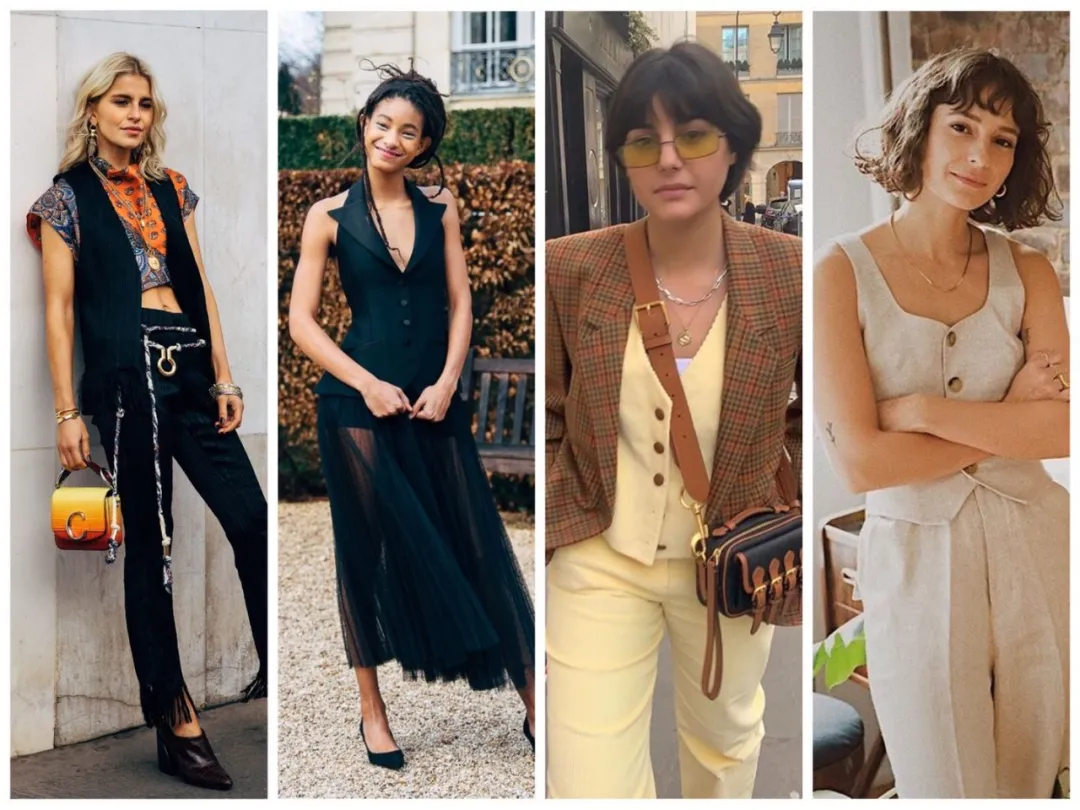 女权运动兴起,女性将马甲作为职业装的一部分,多沿用男士正装设计且成套穿着,主打利落干练。