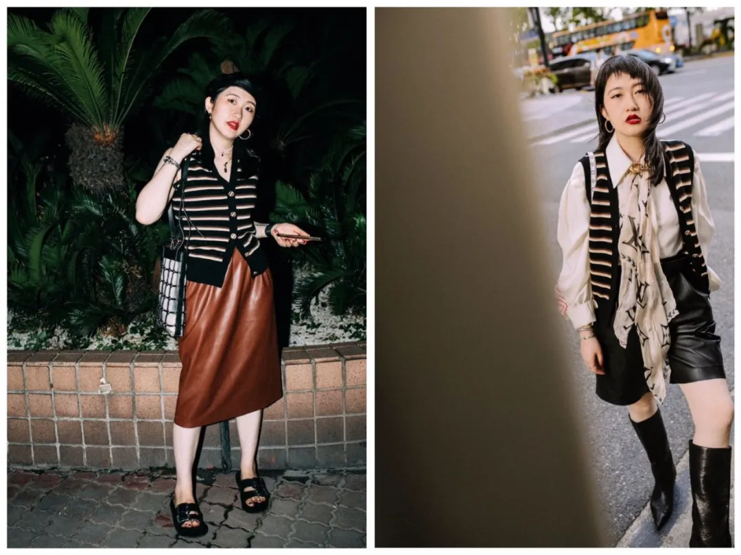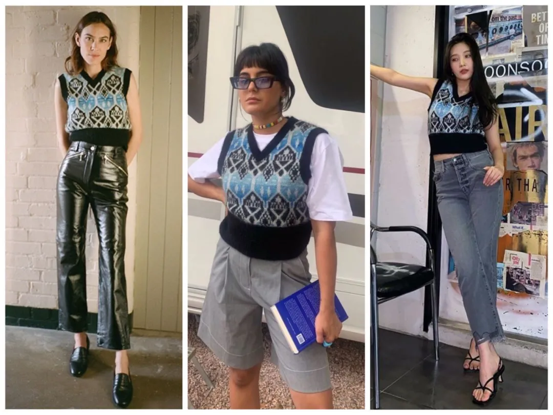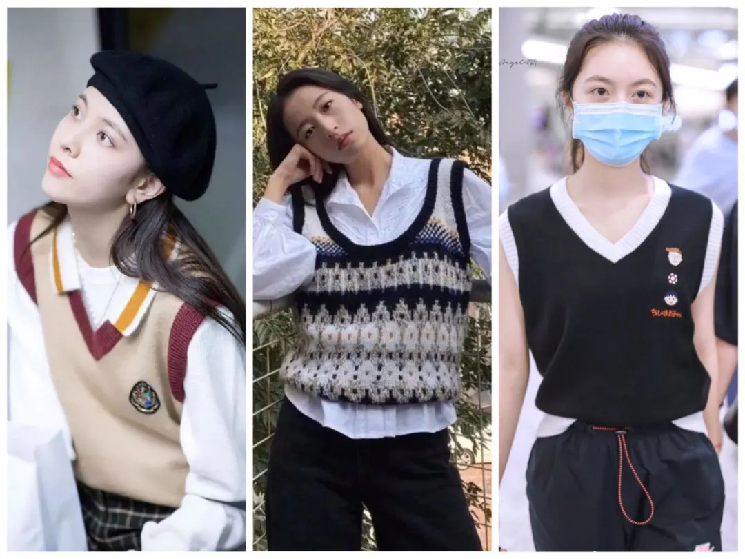 今年日杂还很流行板球针织马甲。领口的大V字显瘦程度MAX,搭配白衬衫、高领打底都ok~