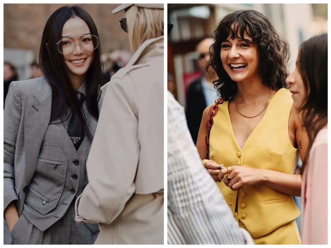 衬衫+马甲+西装容易沉闷,也考验驾驭能力。反倒是真空马甲配西装显得清爽干净。具体可以参考Yoyo Cao这几身对比。