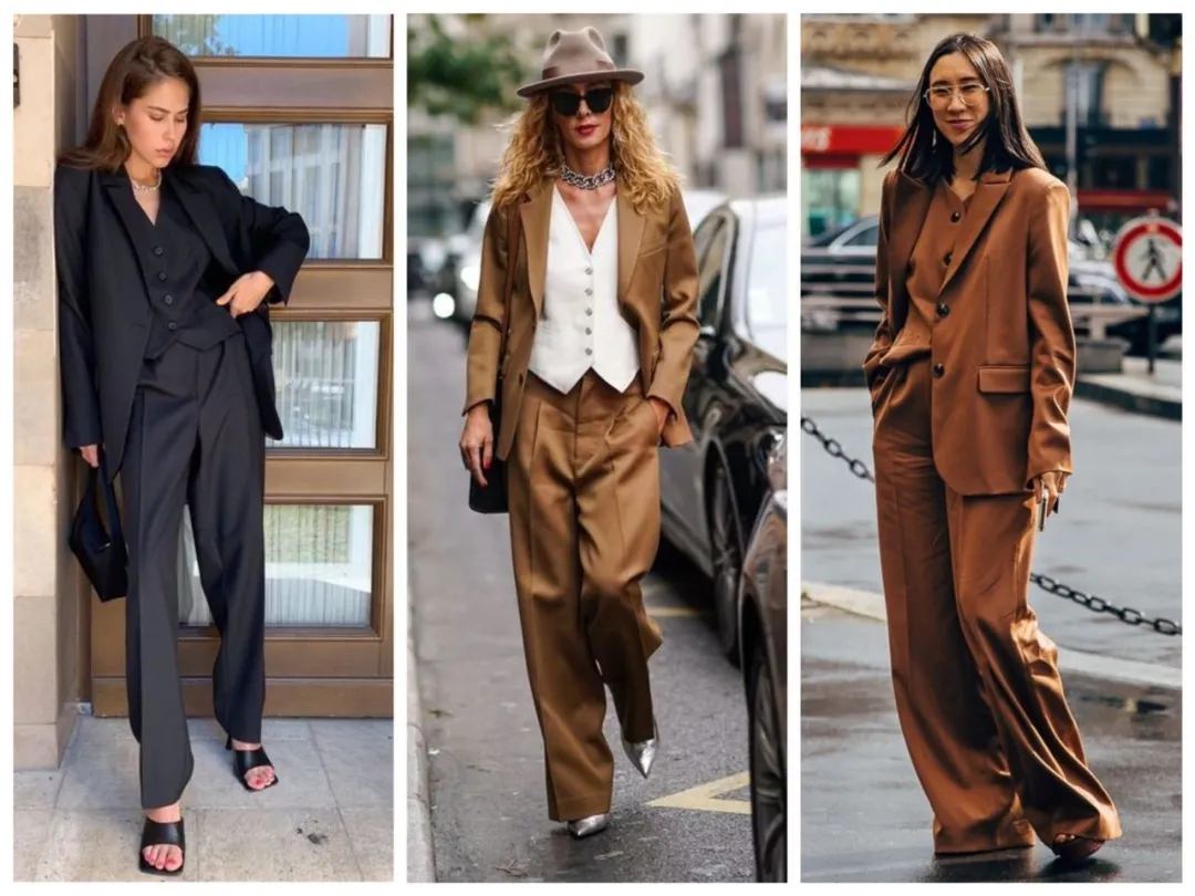 Jennie和博主Alyssa都示范过。思路很一致:配西装裤成套穿,再用厚底鞋、休闲鞋弱化正式感。