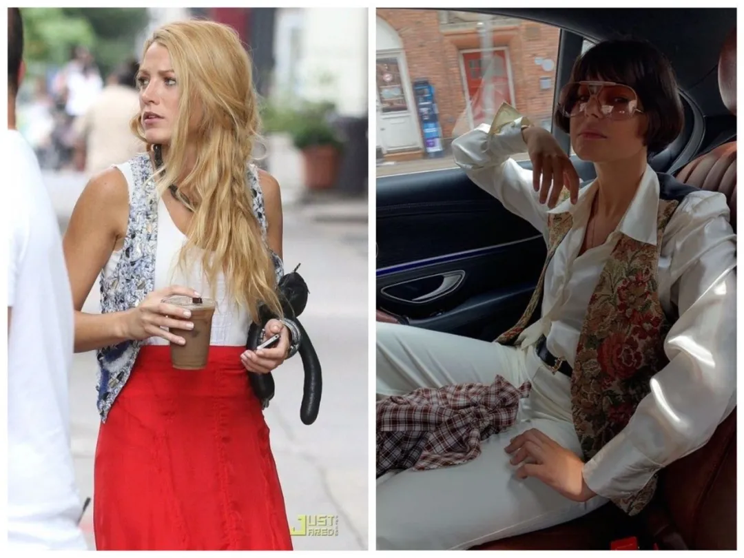 《Gossip Girl》里,S也穿过刺绣马甲,符合她感性的嬉皮士设定。类似的款,博主Marie也穿过。