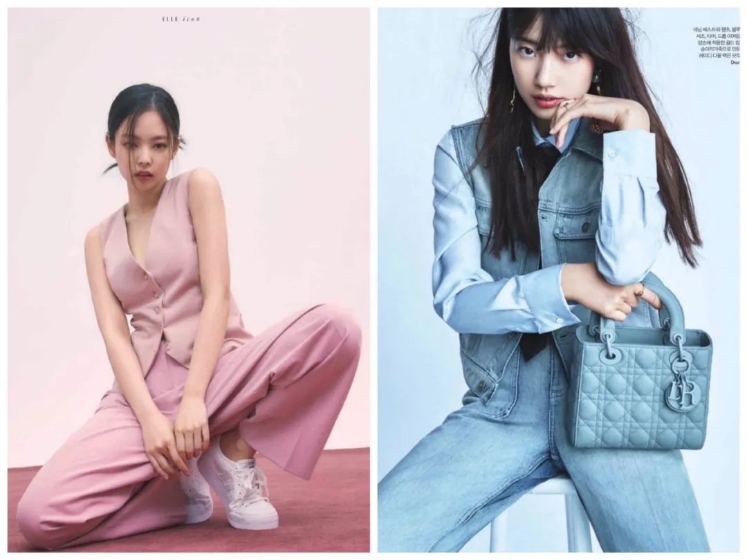 而韩版《ELLE》9月刊,Jennie也刚穿过一套粉色马甲。甚至,该杂志上个月才给秀智做过马甲造型。