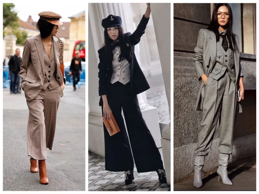 宋妍霏、徐梦洁还有周洁琼这几套,就蛮推荐的。百慕大西裤+马甲今年超火,天冷了配及膝袜即可。