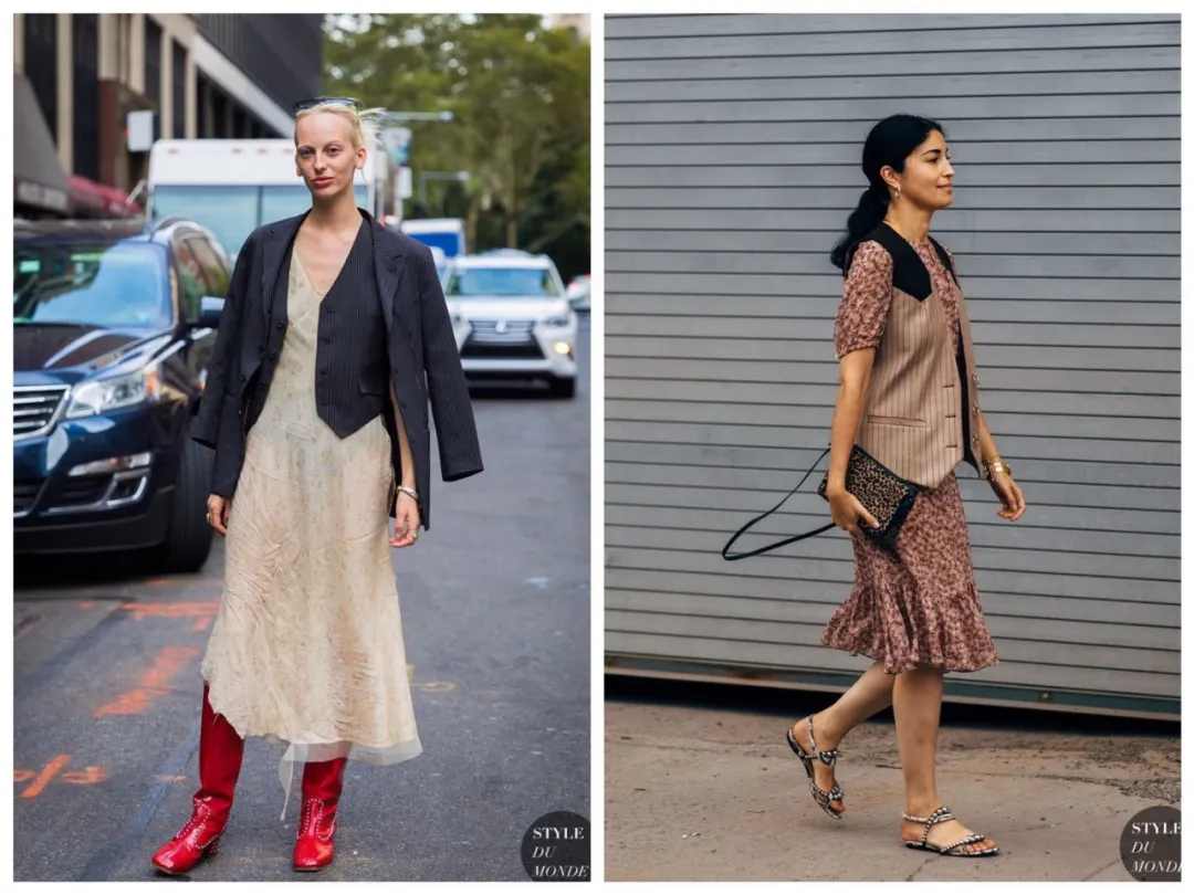 从简单的衬衫裙,到清新的小碎花长裙,都能用马甲丰富层次,增加现代感。喜欢波西米亚风的,也可以这么穿~