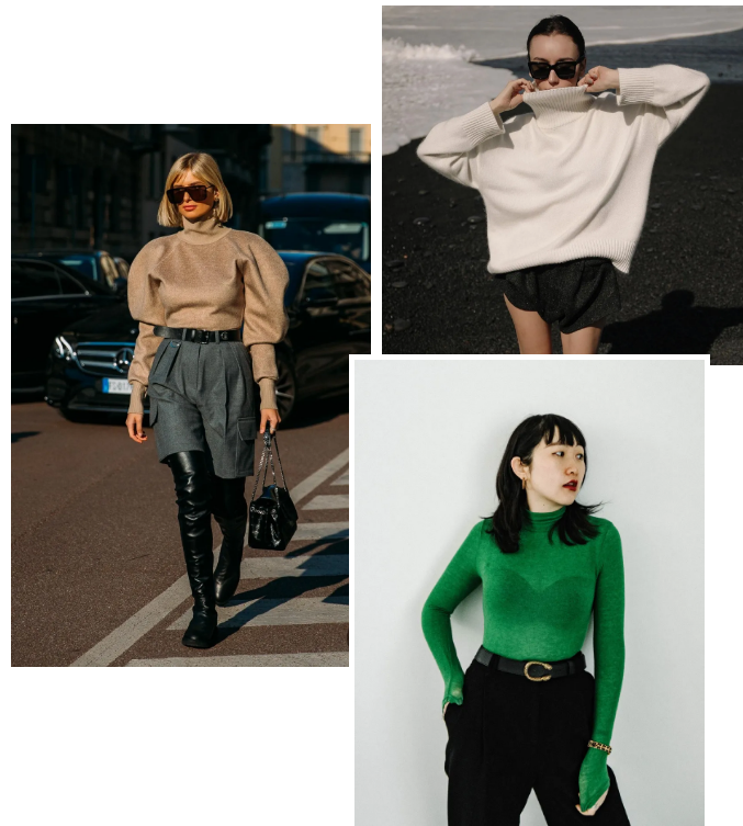 而很多女生对于高领的排斥更多还来自于“高领显脸胖”的误区。对于这事儿,咱们早在3年前的老文中就给大家澄清过了,其实穿对方法,高领才显瘦呢!