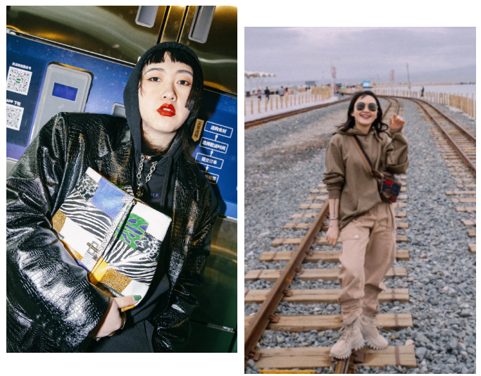 至于长袖T恤,比起一直存在的宽松版(左),这两季显然更流行紧身、微透的皮肤衣。像Alyssa身上这种印花的尤为常见,偶尔也有Gutu身上那种纯色款。