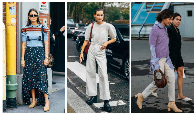 喜欢更特别的look?也可以把那些常规款上会出现的元素放在短袖针织衫上,比如泡泡袖、羊腿袖等。或者像Alyssa这样搭配衬衫穿,可以一直穿到深秋。