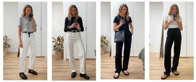 咱暂且不提那些完全不同的类目,即便同是T恤,那oversize版和紧身短小版的,效果就完全不同;同是衬衫,硬挺型的和垂顺型的,也各有风格……