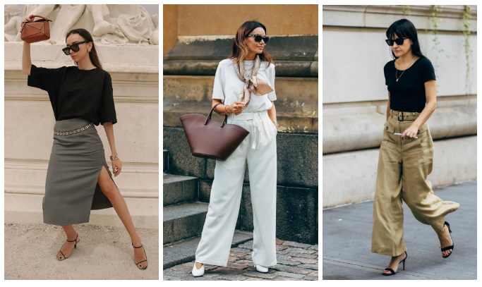 而如果你就喜欢万金油纯色T,那也没问题!黑白T的各种搭配,甚至白T+牛仔裤这个经典组合,我们都能帮你玩出新花样来!