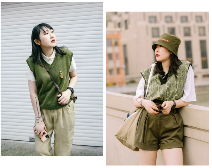 今年入手了两件绿色,左边这件是路边小店随手买的,右边的提花款来自ETHOR,都很喜欢。