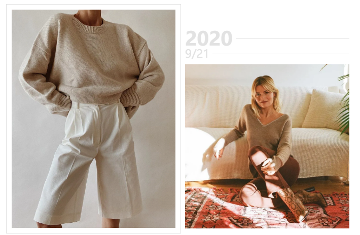 别看这两类都属于基本款啊,每年的毛衣流行趋势都在这基本款上做变化。