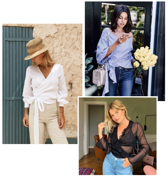 同样具有法式风情的还有裹身上衣,这件单品在三年前非常受宠,而且也实打实的显瘦+有女人味。