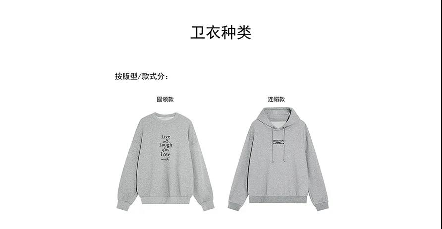 卫衣也是普及度超高的单品了,最常见的基本就是圆领和连帽这两类。