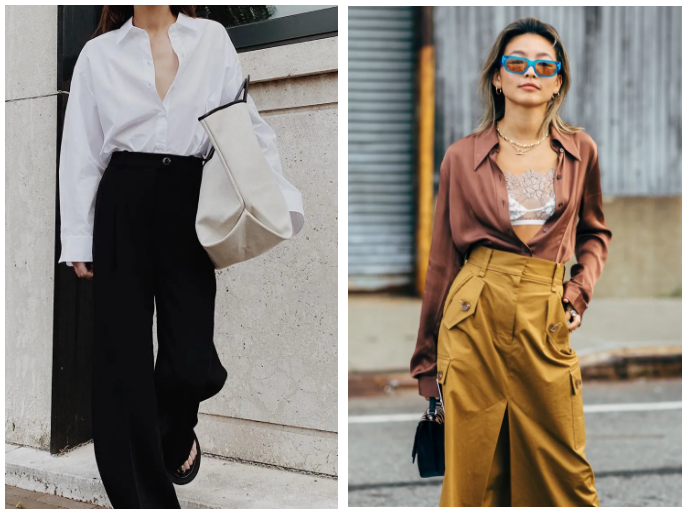 日常衬衫中最常见的款式有合身的常规版型和宽松的oversize版型。一个偏正式,一个偏休闲,在风格上差异明显: