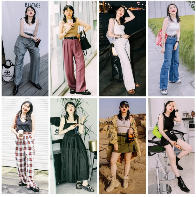 但话说回来,今年的流行风潮啊,确实都在更中性的老头背心上。它比吊带更随性,驾驭起那些帅气单品自然更潇洒。Gutu简直就是最好的例子。