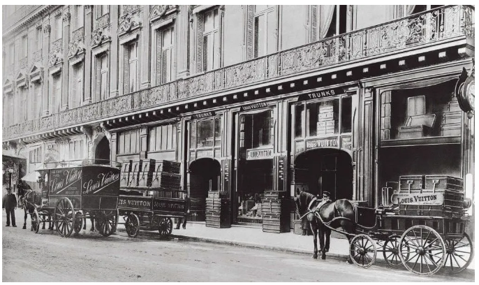 当年,路易威登夫妻在巴黎尊贵地段Rue Neuve Des Capucines四号开设了一个平顶皮衣箱定制店铺便是品牌的最前身。作为创始年份,1854自然是有着非凡意义的。