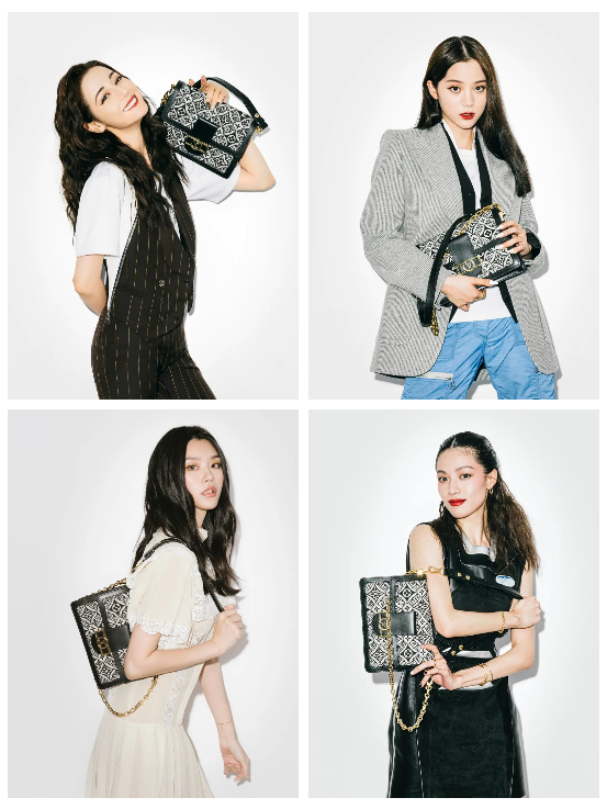 但其中,没被大面积high light,只是握在模特手里的几只SINCE 1854图案包包,竟显得格外神秘还带有几分狂野,自然成为了姜女士眼里的主角。