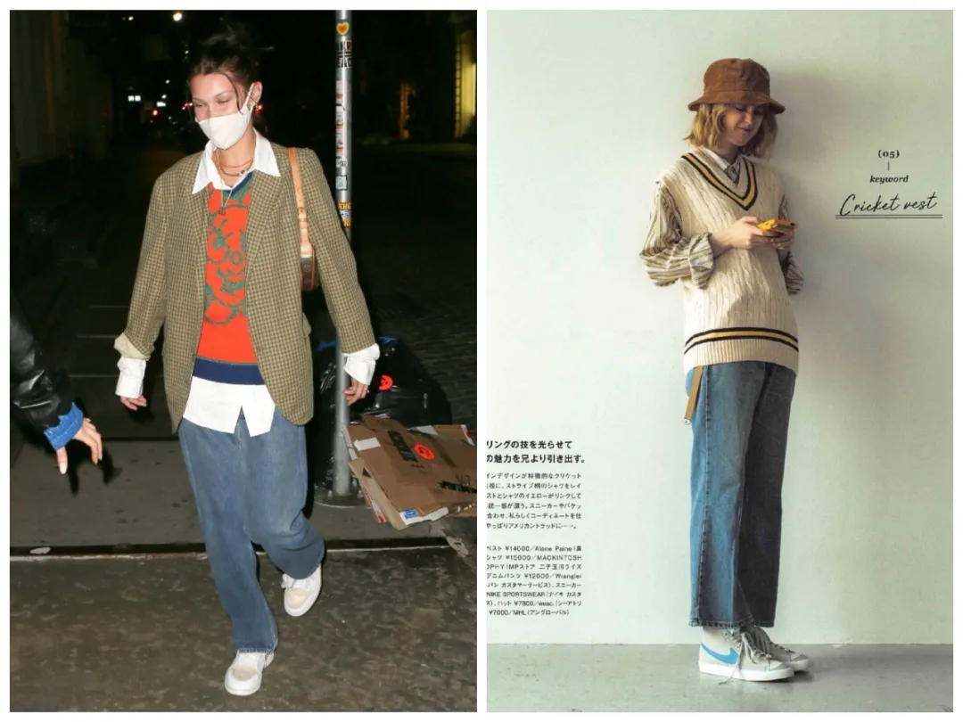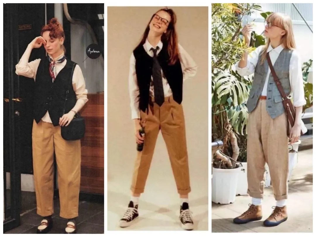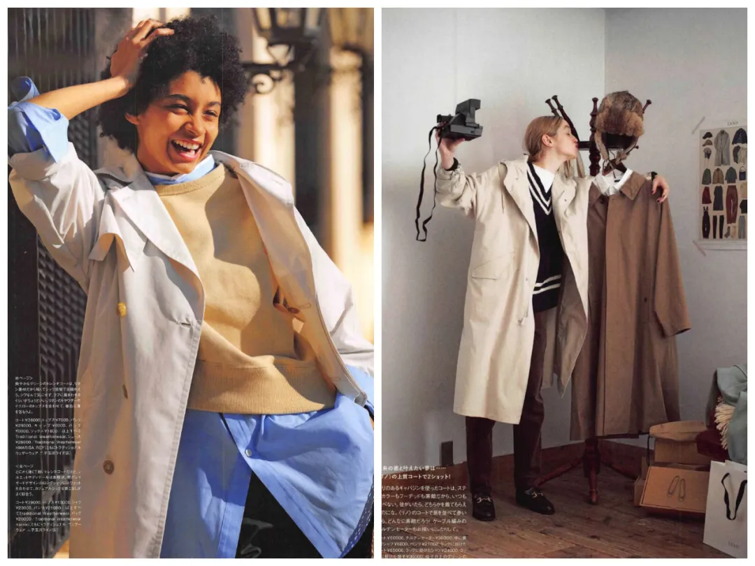 入冬之后,直接在外面套风衣、大衣、厚西装就行。日杂经常这么搭,超有英伦内味~