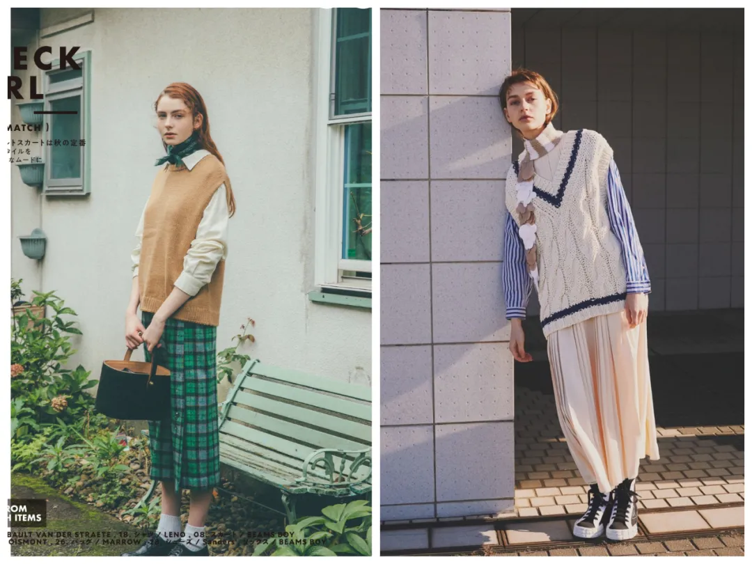 也可以像日杂这样搭配迷笛半裙,增加沉稳、文艺、内涵的腔调。