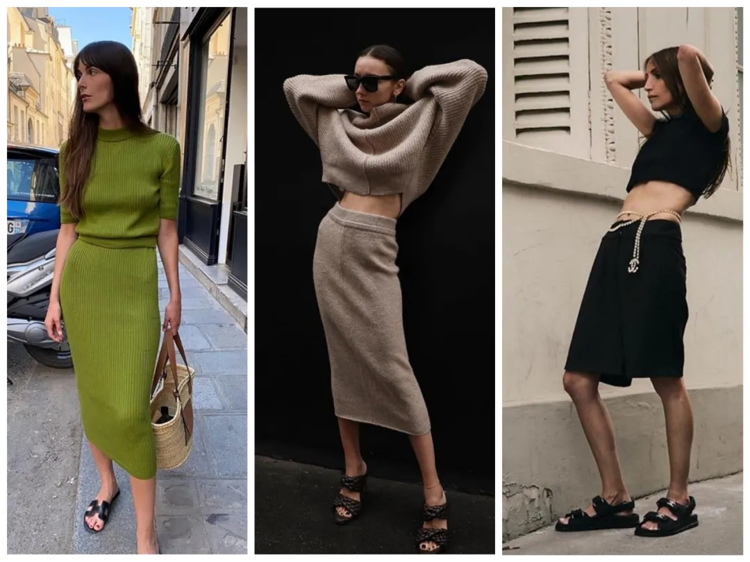 不过,针织裤到底挑身材,上班太贴身也不得体,个人更推荐针织套裙。