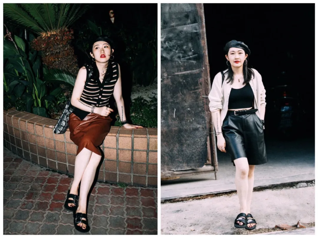 酷劲十足又带一点软糯、知性,选择光泽感不那么强的皮料,对腿粗星人更友好。