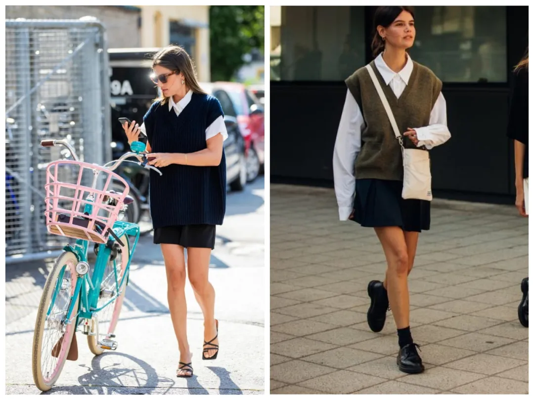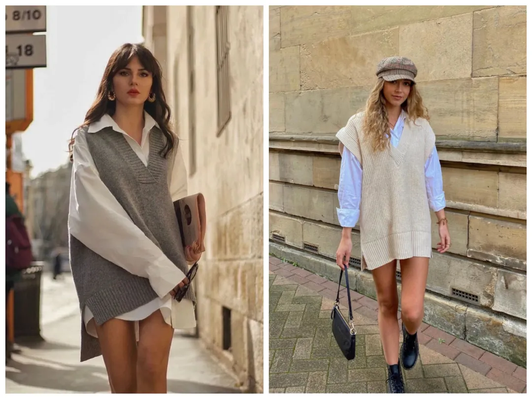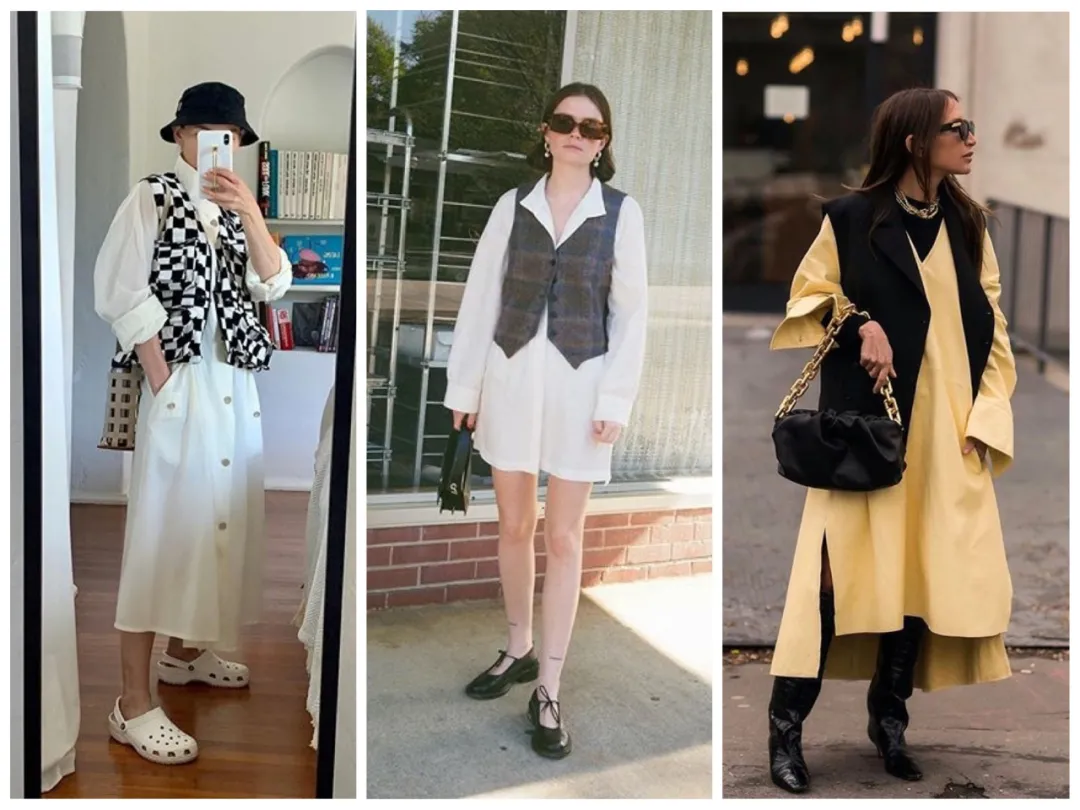 怪小孩Reese、时尚博主Chloe都有拿长袖衬衫裙配马甲穿。增加层次,顺便为躯干保暖,当下的南方就能穿。