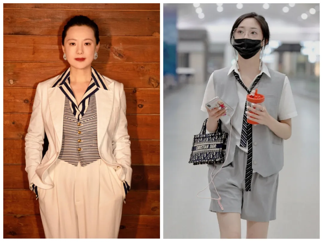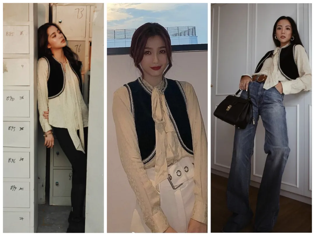 欧阳娜娜、虞书欣、Yoyo Cao集体撞衫的这一套CELINE,就延用了这个套路。