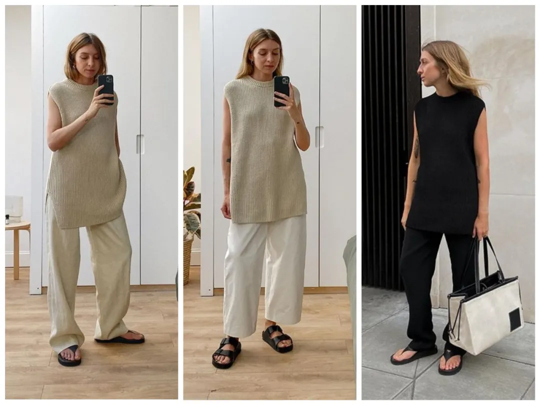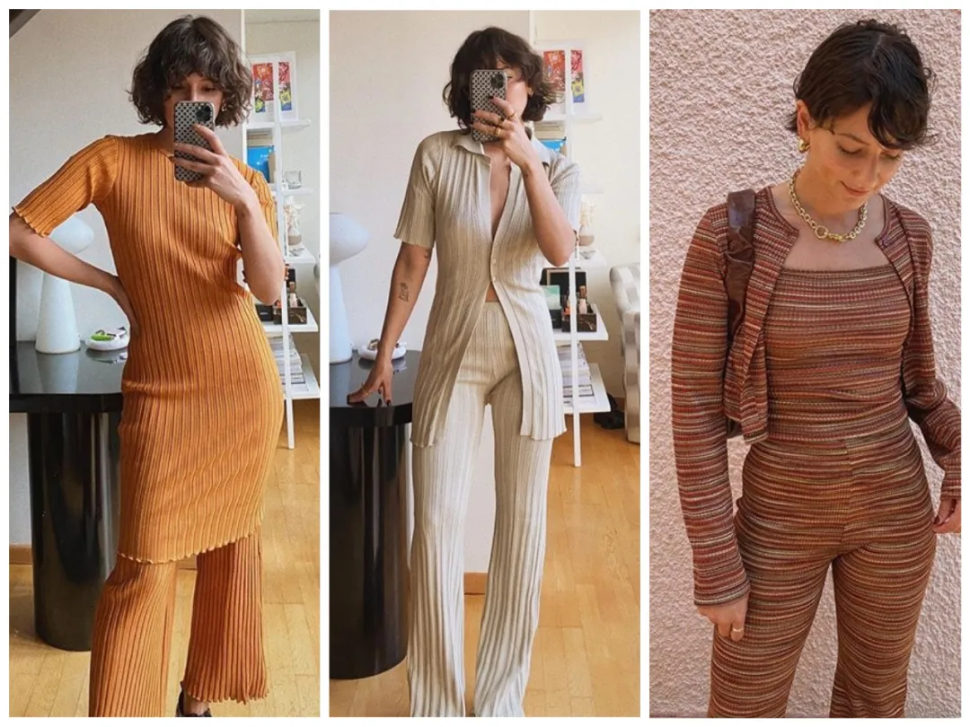 Alyssa穿过无数次,都是针织裤+针织上衣,分别来自小众品牌Staud、The Line by K和Source Unknown。