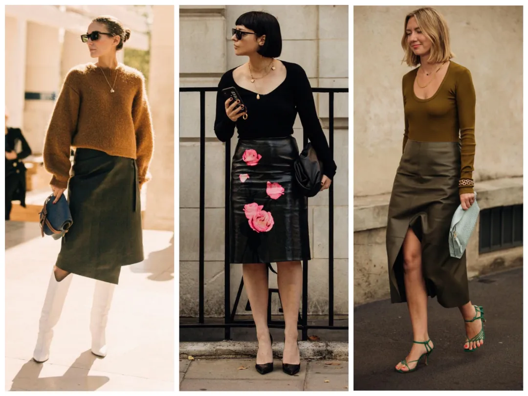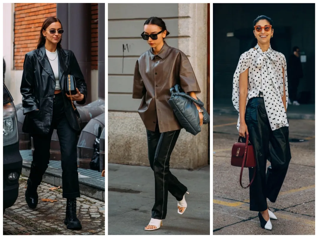 Miss 烧饼一直觉得,秋冬底色是沉稳,因此更需点缀。而皮质,恰好能给针织/羊毛类单品增添一抹光泽。
