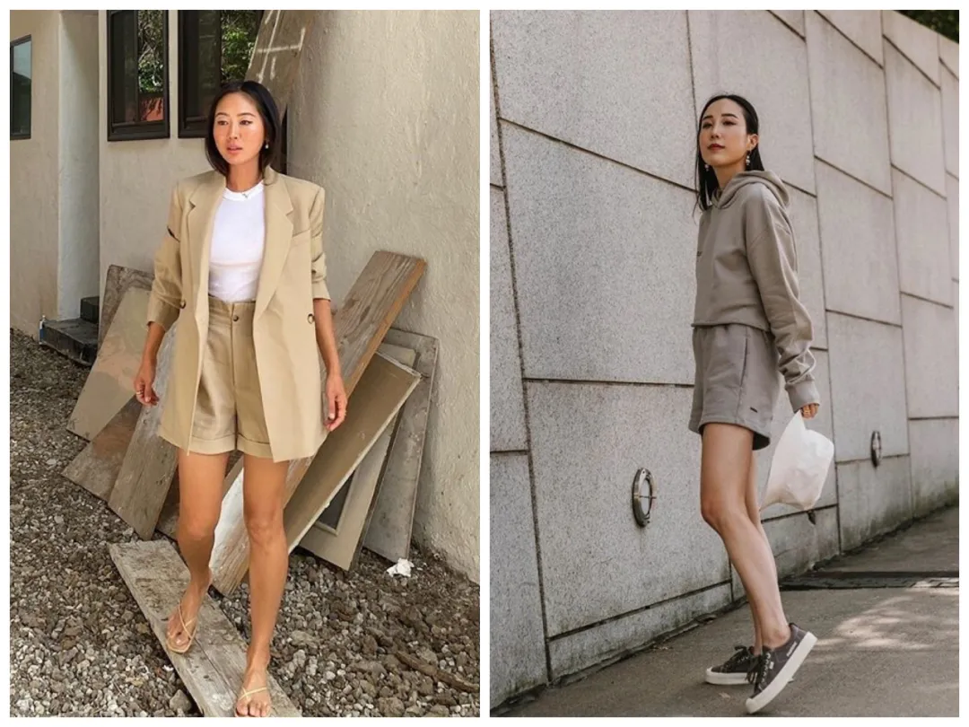 并且,这个套路根据不同的上衣选择,能呈现出不同的风格。职场OL,衬衫+短裤看起来精致干练。