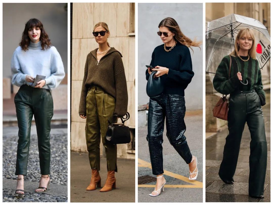 上班通勤的话,针织毛衣配皮裤就是2020经典又应季的时髦look!