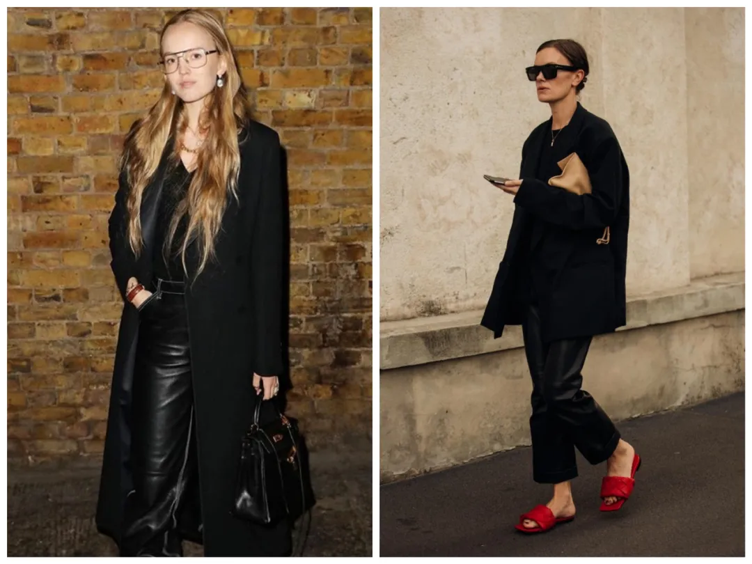 Alexandra Carl和Jo Ellison这两身all black,就因为皮裤的加入而愈发吸引人~