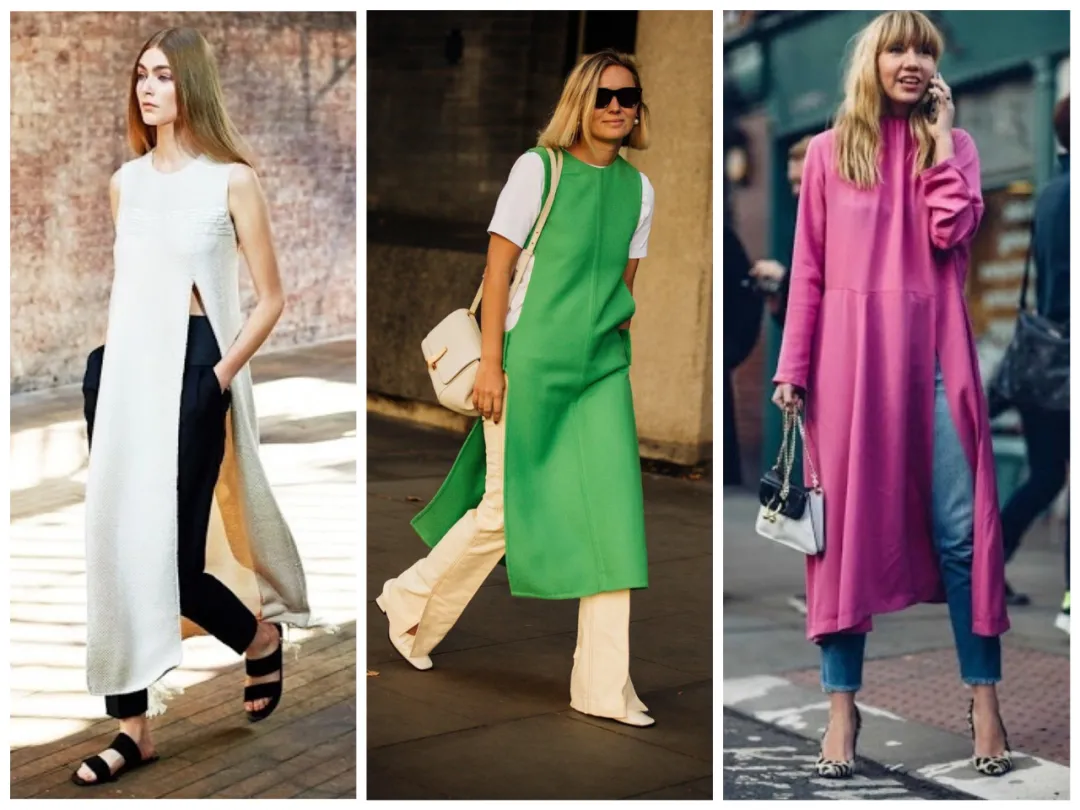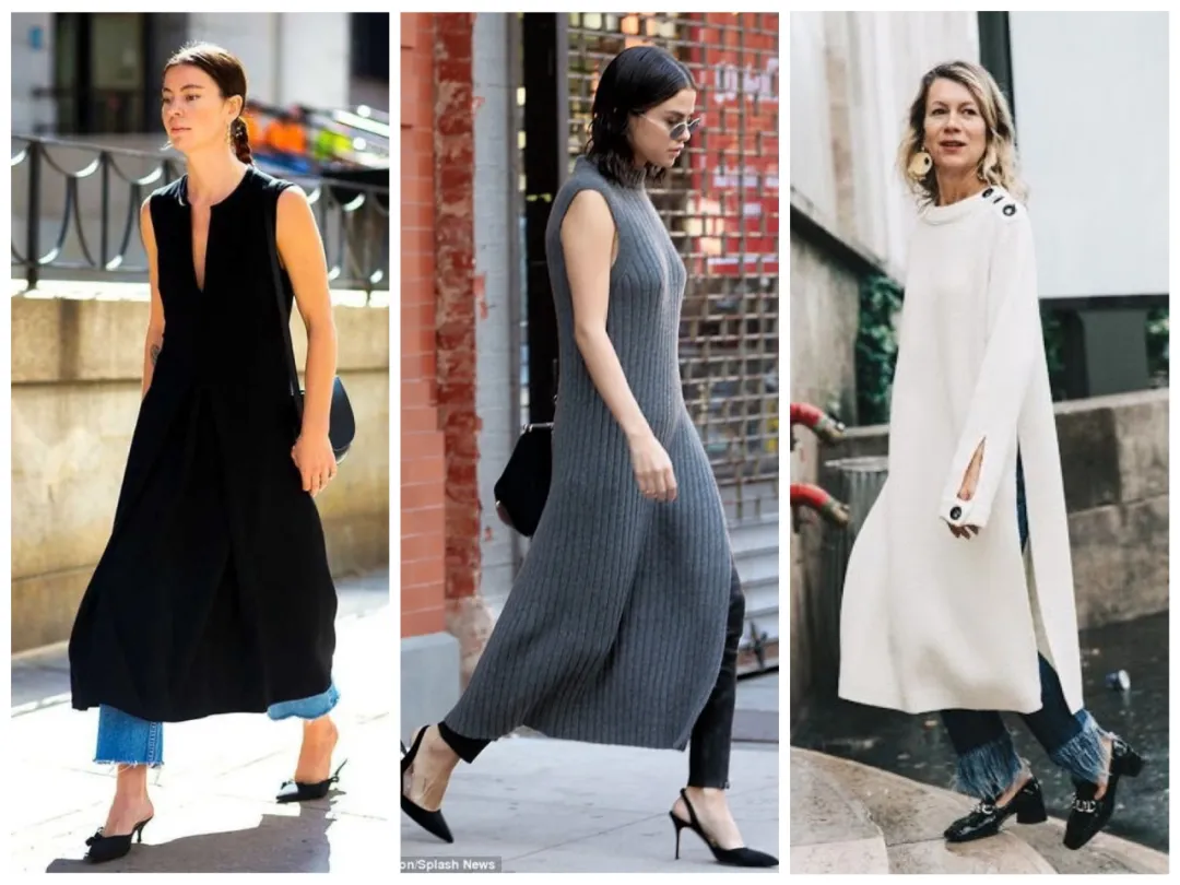 - 外搭的连衣裙,要避开裙摆设计复杂的款式(左)。右图这种利落型,利于视觉纵向拉伸,显高显瘦。