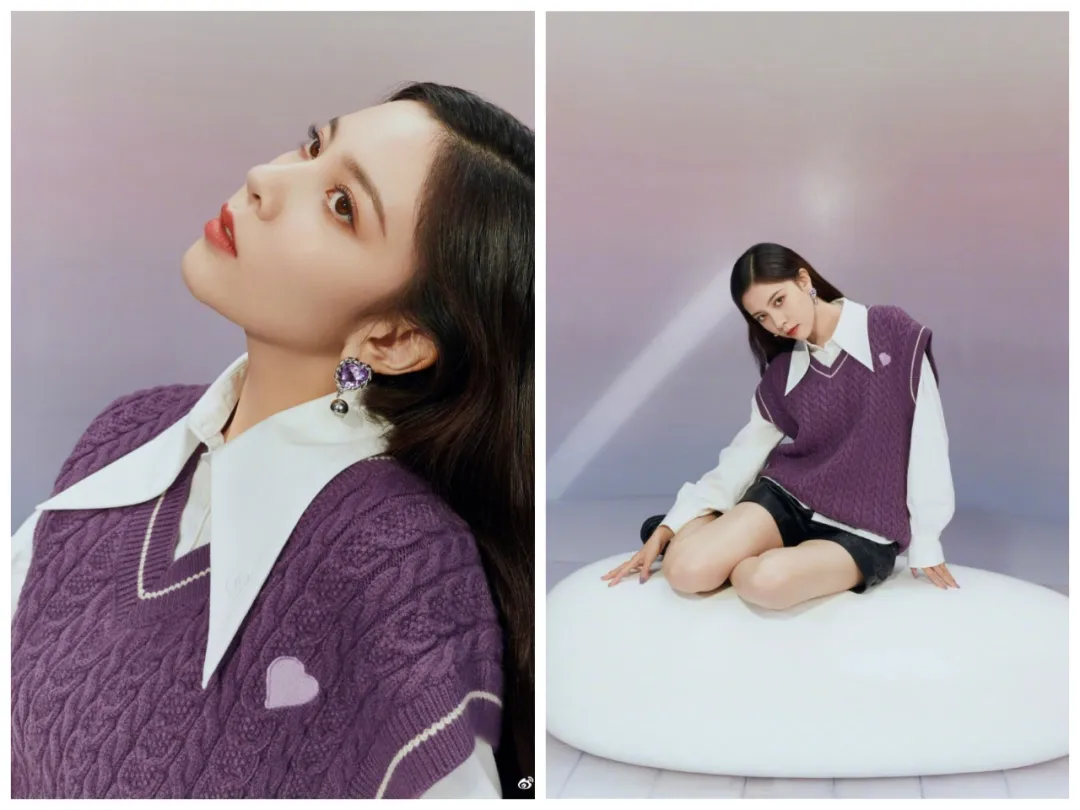 包括宋妍霏和乐町的联名系列,也有一件针织背心用来搭配尖领衬衫,学生党直接copy也没问题。