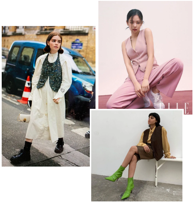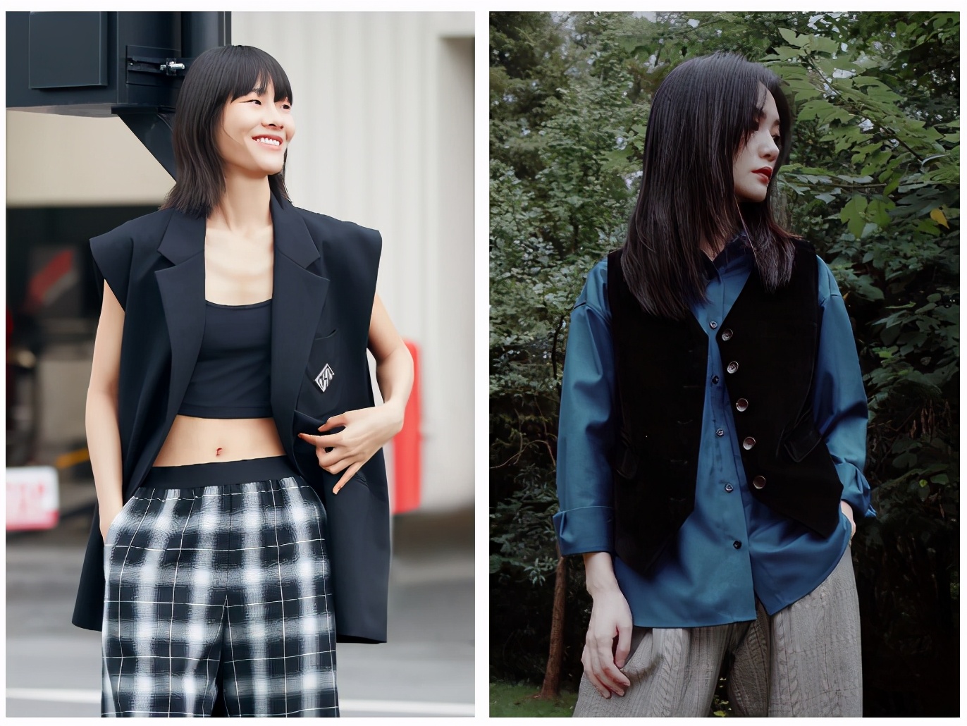 但今年秋天最值得get的,还是以往被单纯认为只能做内搭的无领马甲。现在时髦精们会直接单穿,或者搭配衬衫、搭裙子…足够从夏天一路穿到冬!