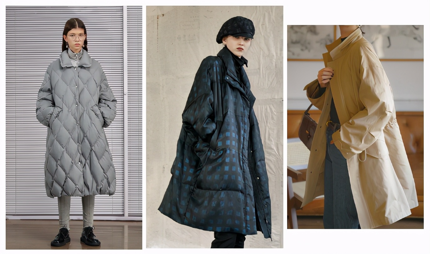 今年还有一类翻领设计的日系风衣也很受欢迎,大多都是宽松的H型或A型,特别适合文艺范女生。