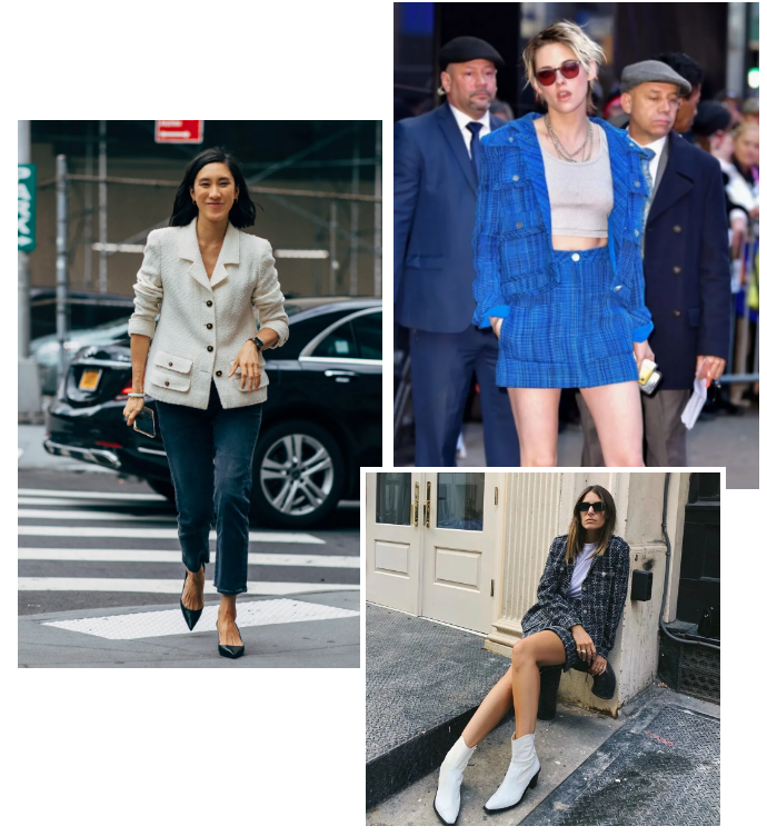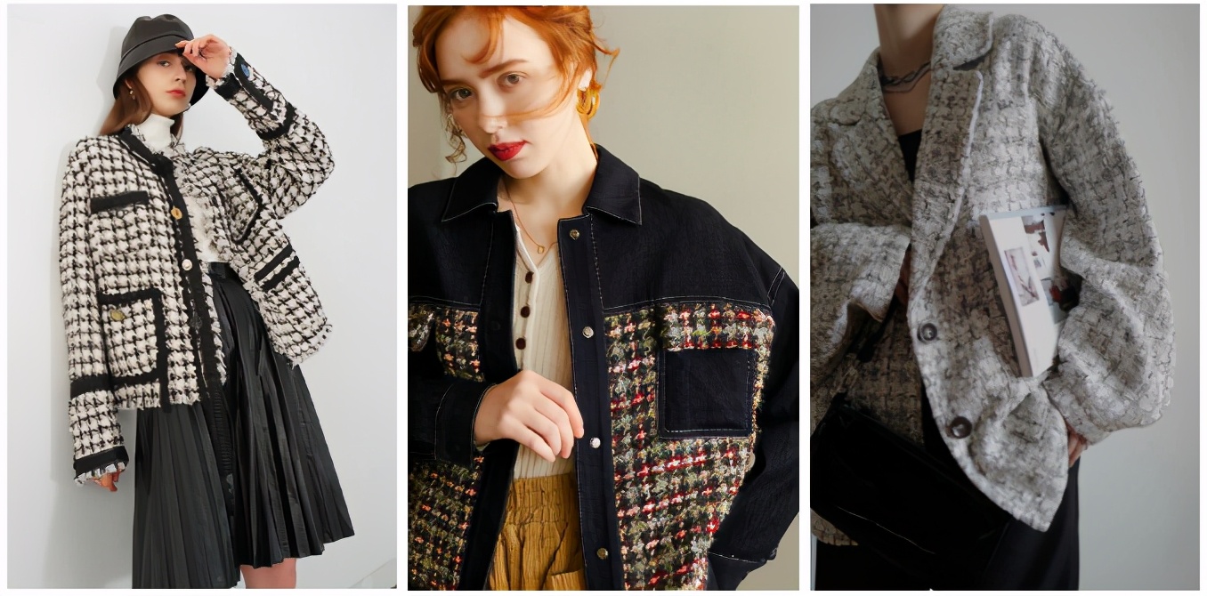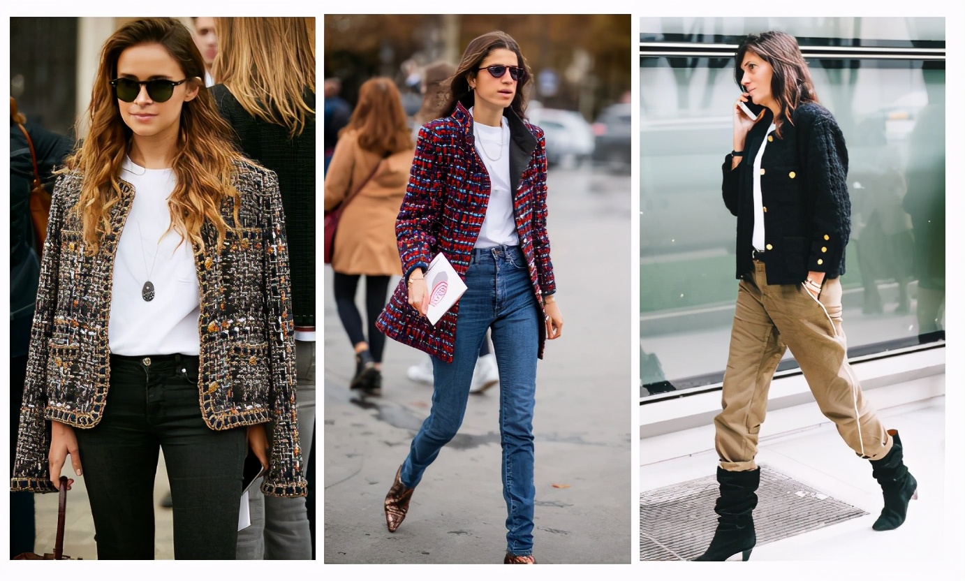 除了上面那些,秋季常见的短外套还有这么三类:粗花呢、针织和卫衣。