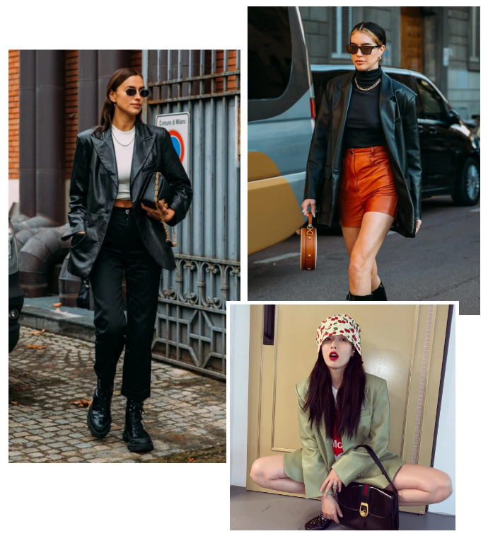 今年的西装还有个逃不过去的关键词就是“皮革”。皮西装有多火呢,从时尚博主到超模到女明星,各路时髦人,人手一件!