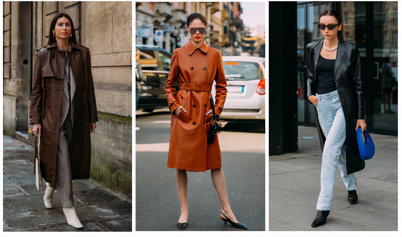 喜欢帅气风格的女生,去年就开始火的皮革风衣一定值得拥有。皮革风衣比前两年流行的PVC材质更实穿,穿去办公室也很适合,有种女boss的气场。