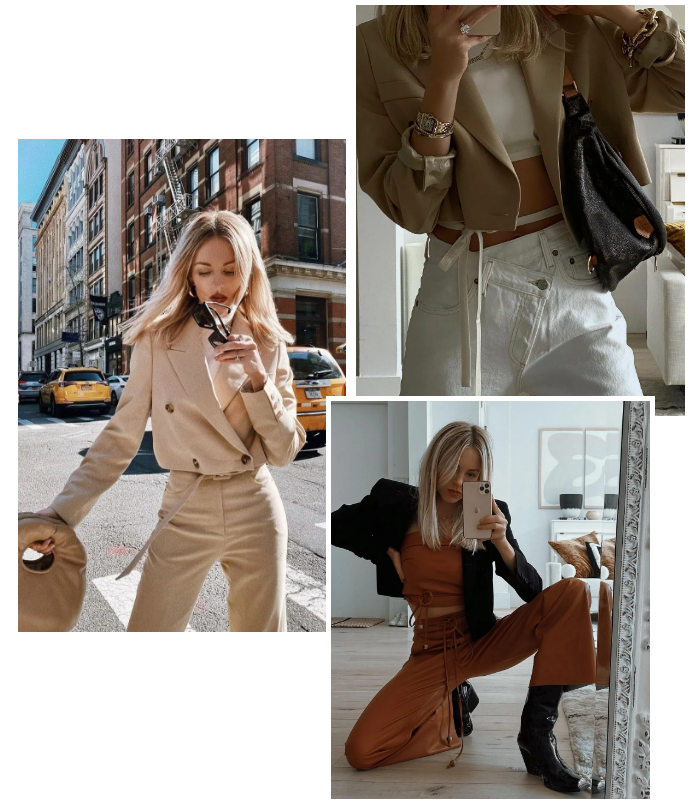 今年春天还流行过一阵适合小个子的超短款西装。纽约博主Shea Marie作为小腰精,就很爱这一件。她喜欢用来搭配直筒裤,显得比例特别好。