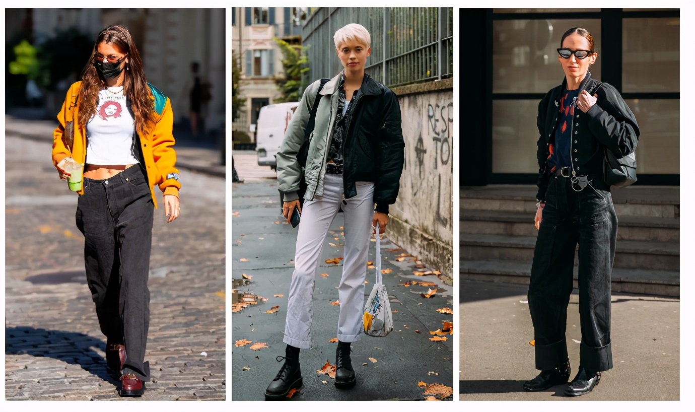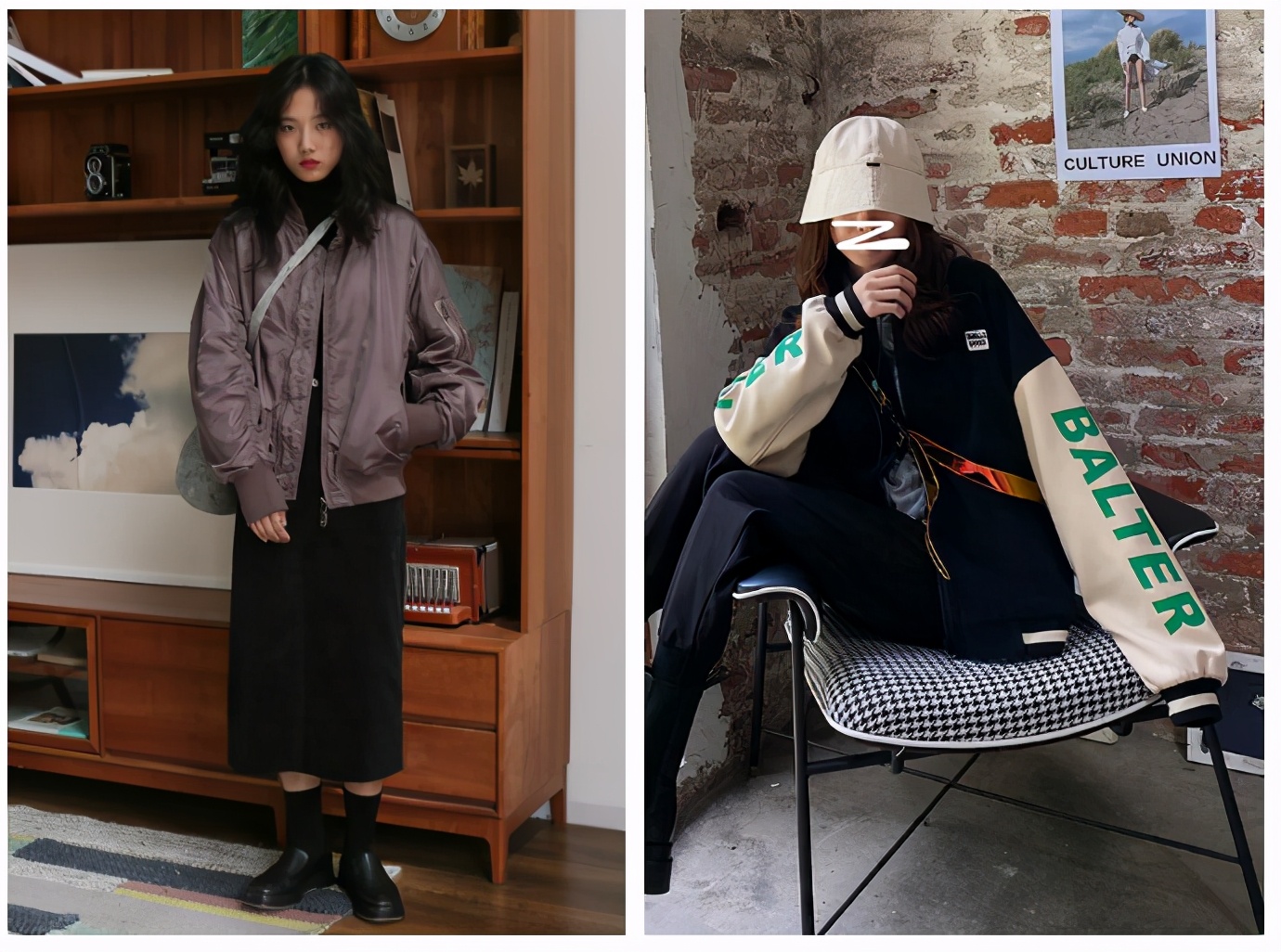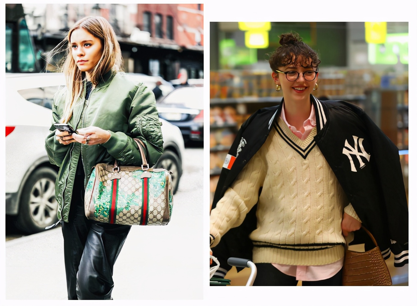 其中最容易搞混的就是飞行员夹克和棒球夹克。飞行员夹克起源于空军制服,帅气又中性;棒球夹克起源于学院运动,被嘻哈发扬光大,休闲运动感更强。
