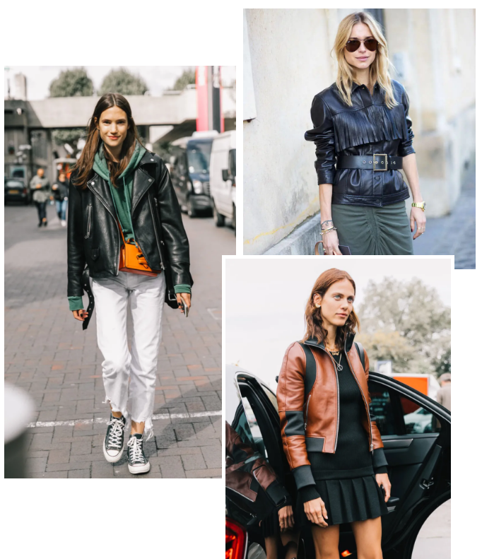 而且皮夹克的种类其实超多,除了经典的机车款,还有翻领款、飞行员夹克款、衬衫款……等等。