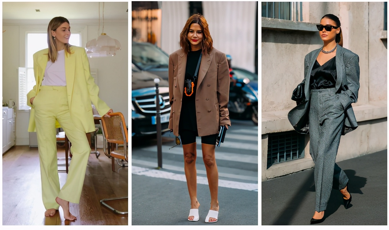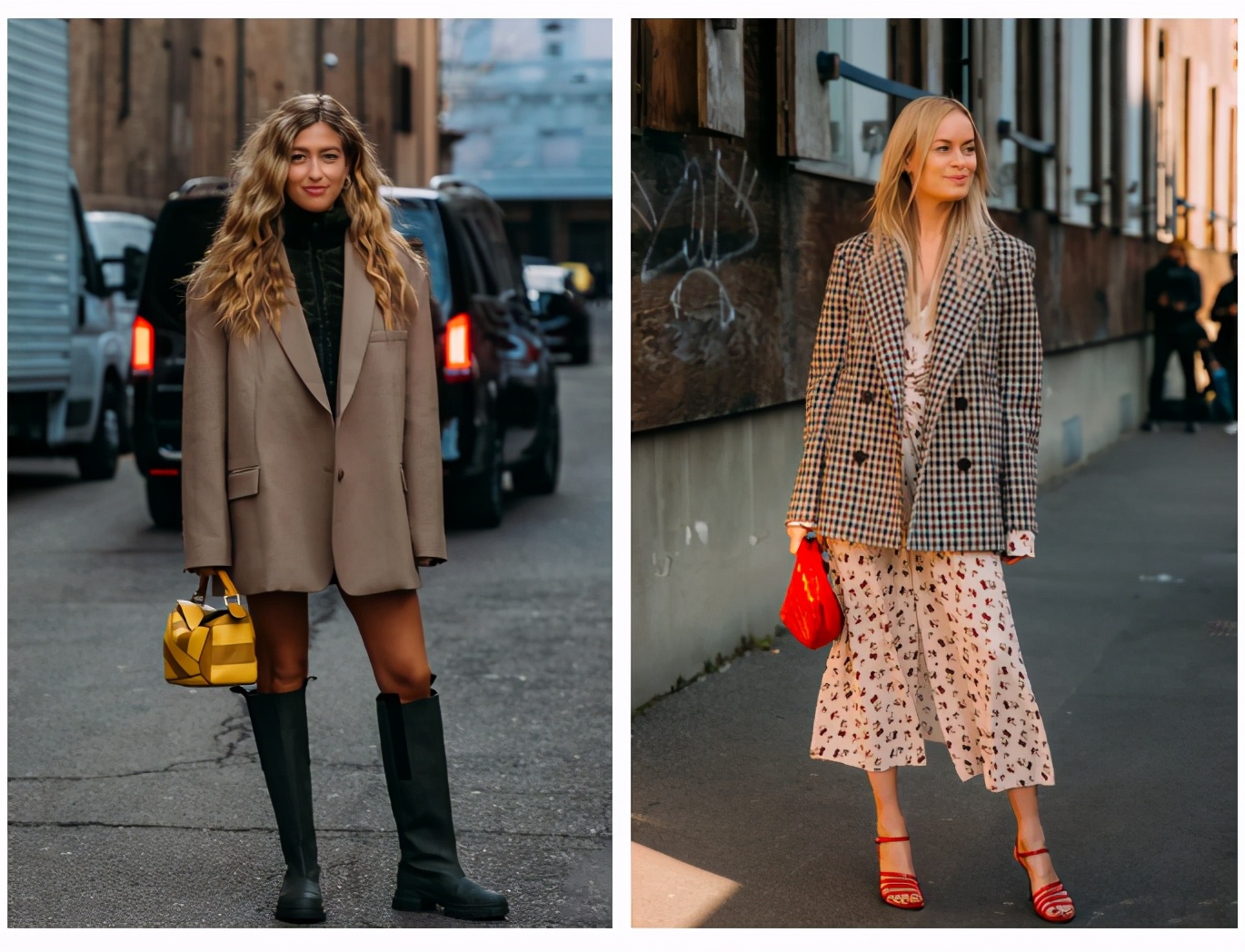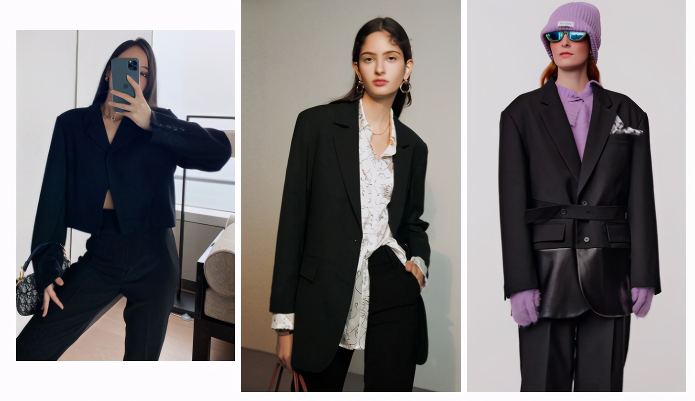 大宽肩西装其实就是80年代的power suit,彰显女性力量,气场非常强大;直身型西装呢更像是60年代出现的吸烟装,英气利落却更不挑人。