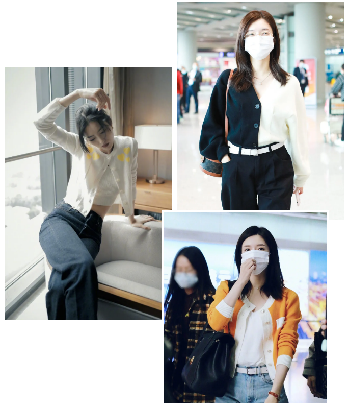 还有不求气场,但求舒适的开衫组,比如美人儿大表姐和江疏影。江疏影最近穿的两件开衫都是撞色设计,都好好看哦!