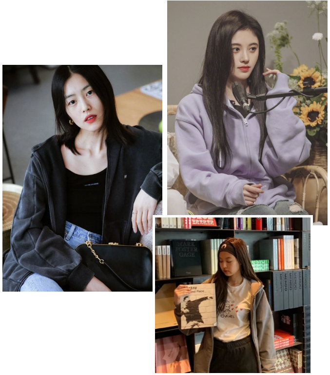 温柔女生想要换个口味,还可以试试更休闲、更街头的卫衣开衫。我比较建议选宽松的oversize款,从超模到小花都在穿,可以打造当下最时髦的甜酷风~
