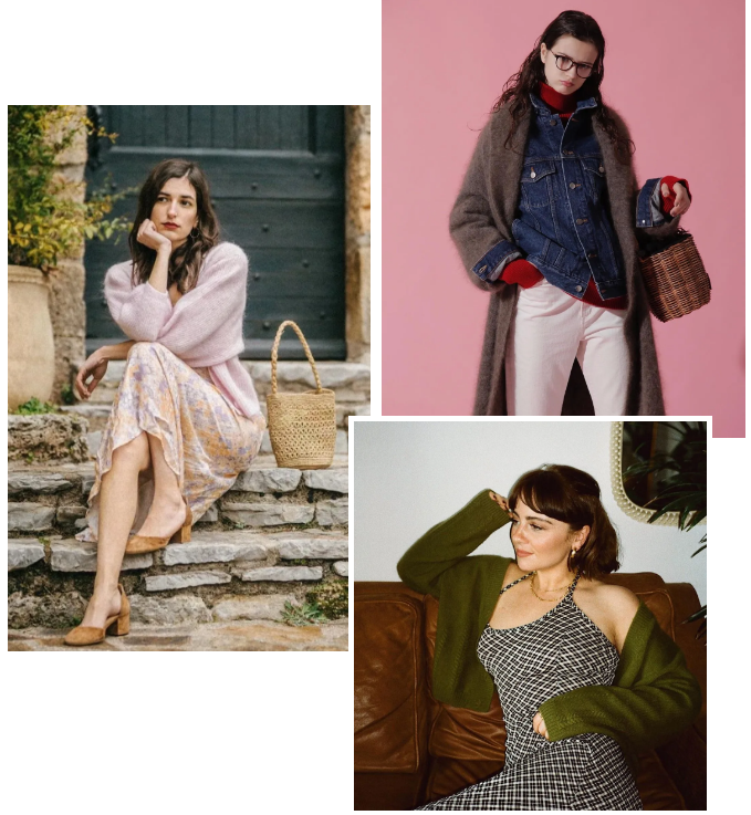第二类呢是那些具有膨胀感的款式,比如绞花奶奶开衫、毛茸茸的纱线等…