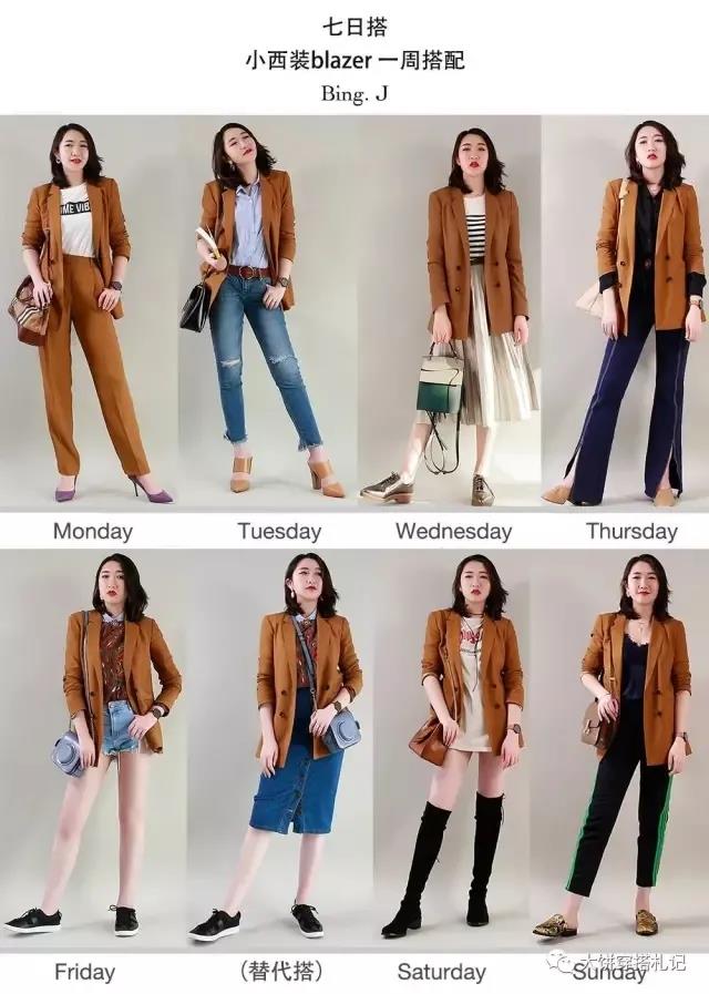 至于各种西装的搭配?那咱们实在讲过太多回了,戳这里就可以复习。姜女士还曾经做过直身西装的7日搭,大家也可以参考参考~