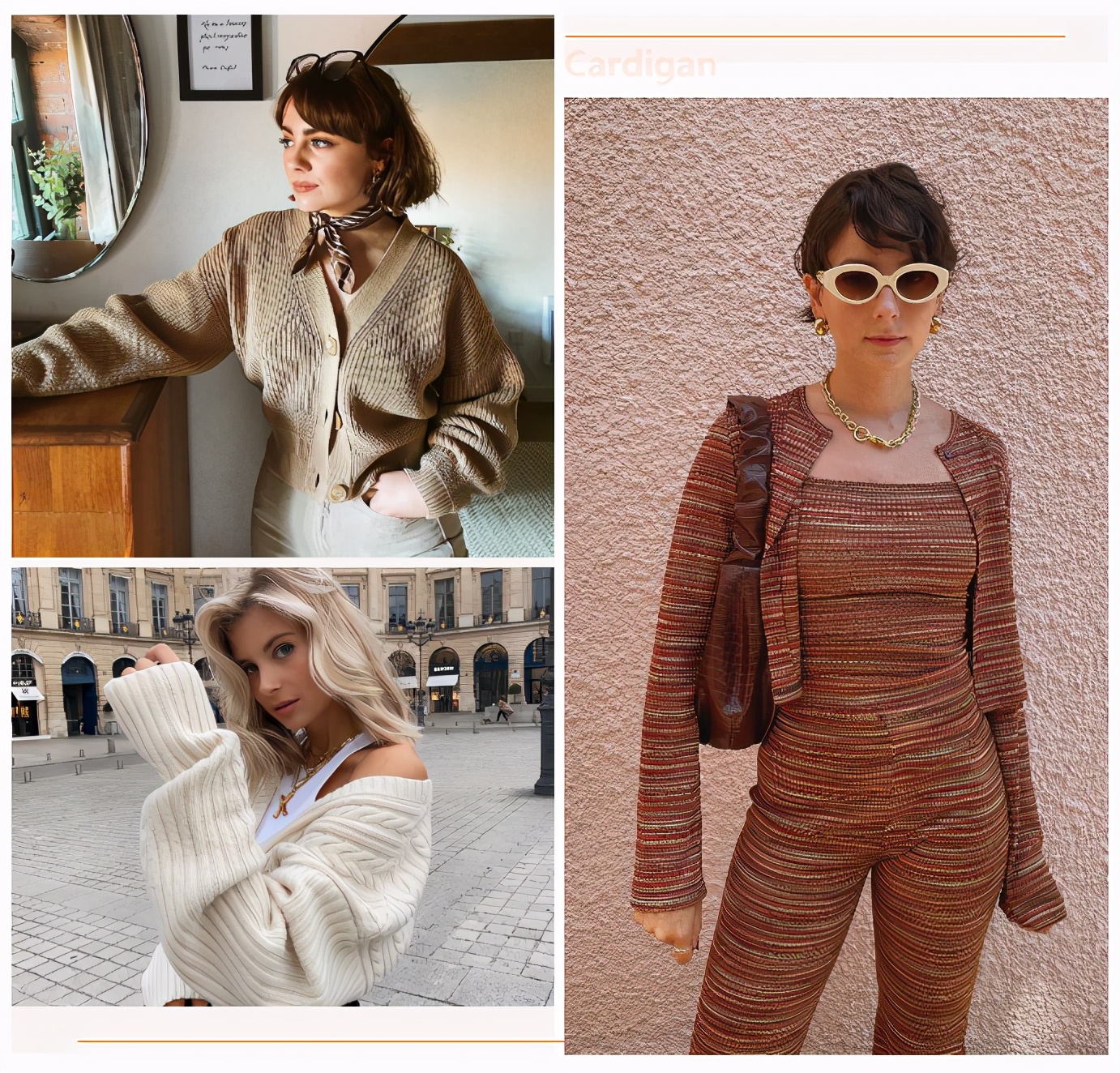 恰好这类开衫今年年初的时候特别受欢迎,我们当时还扒过毛衣流行趋势。
